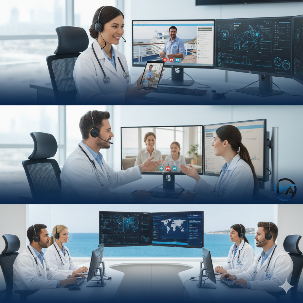 Uzak bölgelerde çalışan personel, gemi mürettebatı veya saha ekipleri için uzaktan sağlık desteği verilir. İlk değerlendirmeler telemedikal sistemler üzerinden yapılır, gerekli durumlarda hastane sevki organize edilir.